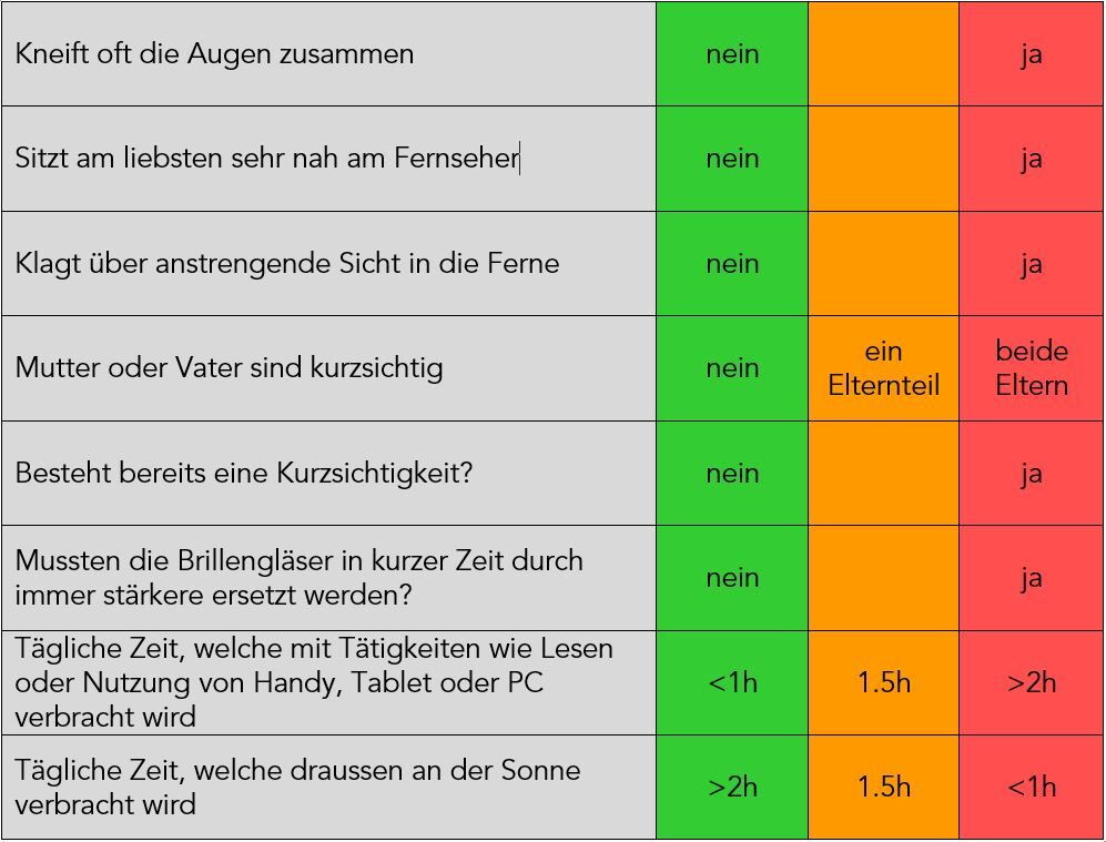 Sind zwei oder mehr der Antworten im orangen oder roten Bereich? Dann macht eine eingehende Abklärung durch unsere Optometristen Sinn. Melden Sie sich online oder per Telefon 033 222 54 22 für eine kostenlose Erstberatung an.